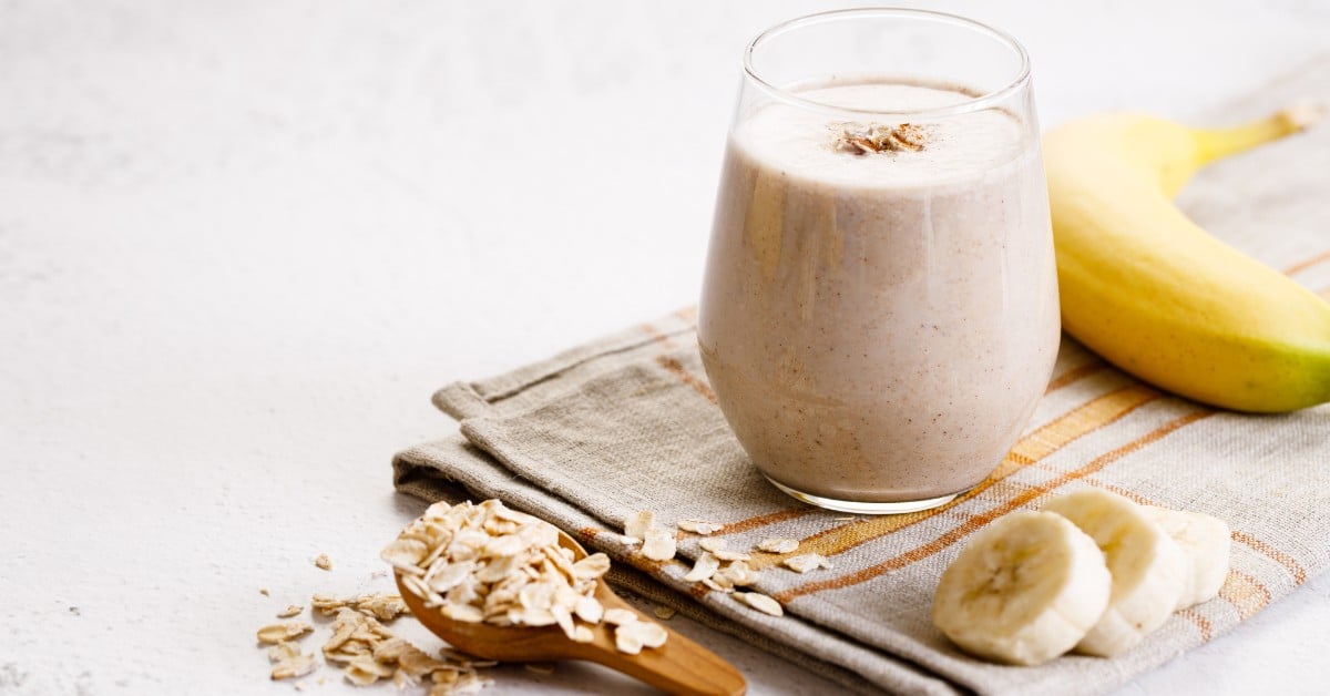 Sử dụng 1 cốc sữa tươi không đường hoặc sữa hạt, đun nhỏ lửa trên bếp cho sữa hơi ấm. Cho 2 muỗng canh yến mạch cán dẹt, 1 lát gừng tươi nhỏ (hoặc ¼ muỗng cà phê bột gừng), 1 quả chuối vào máy xay. Thêm phần sữa ấm vào, xay cho hỗn hợp mịn và đổ ra ly. Có thể rắc thêm một chút bột quế, hạt chia hoặc hạt óc chó nghiền vụn để thêm hương vị và dinh dưỡng cho bữa sáng ấm áp này.