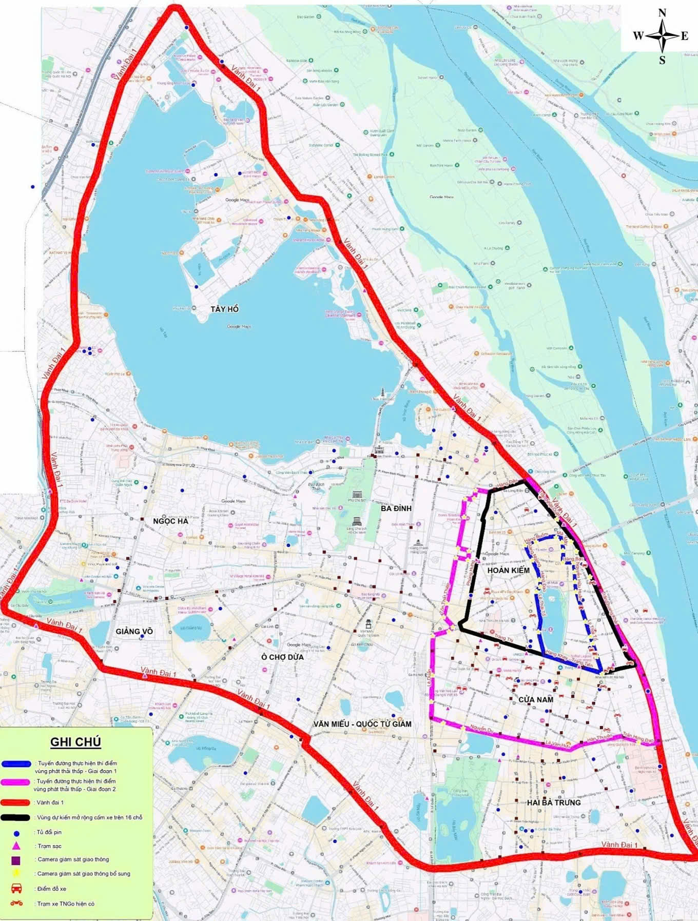 Giai đoạn 2 từ ngày 1/1/2027 đến ngày 31/12/2027, Hà Nội dự kiến mở rộng khu vực thí điểm tại phường Hoàn Kiếm và Cửa Nam gồm 3,6km2 với chu vi 8,3km và dân số khoảng 136.947 người.