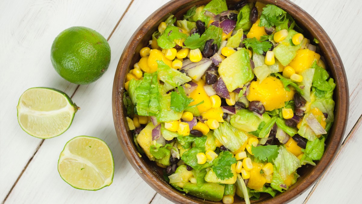 Salad bơ, xoài trộn rau củ.